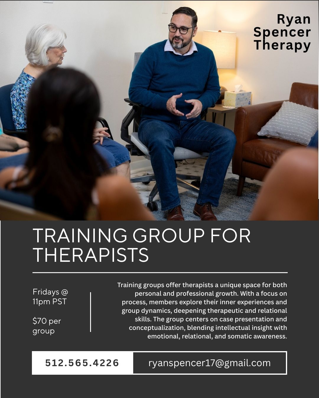 Ryan Spencer, MFT, CGT is starting a therapist-only training and process group.
